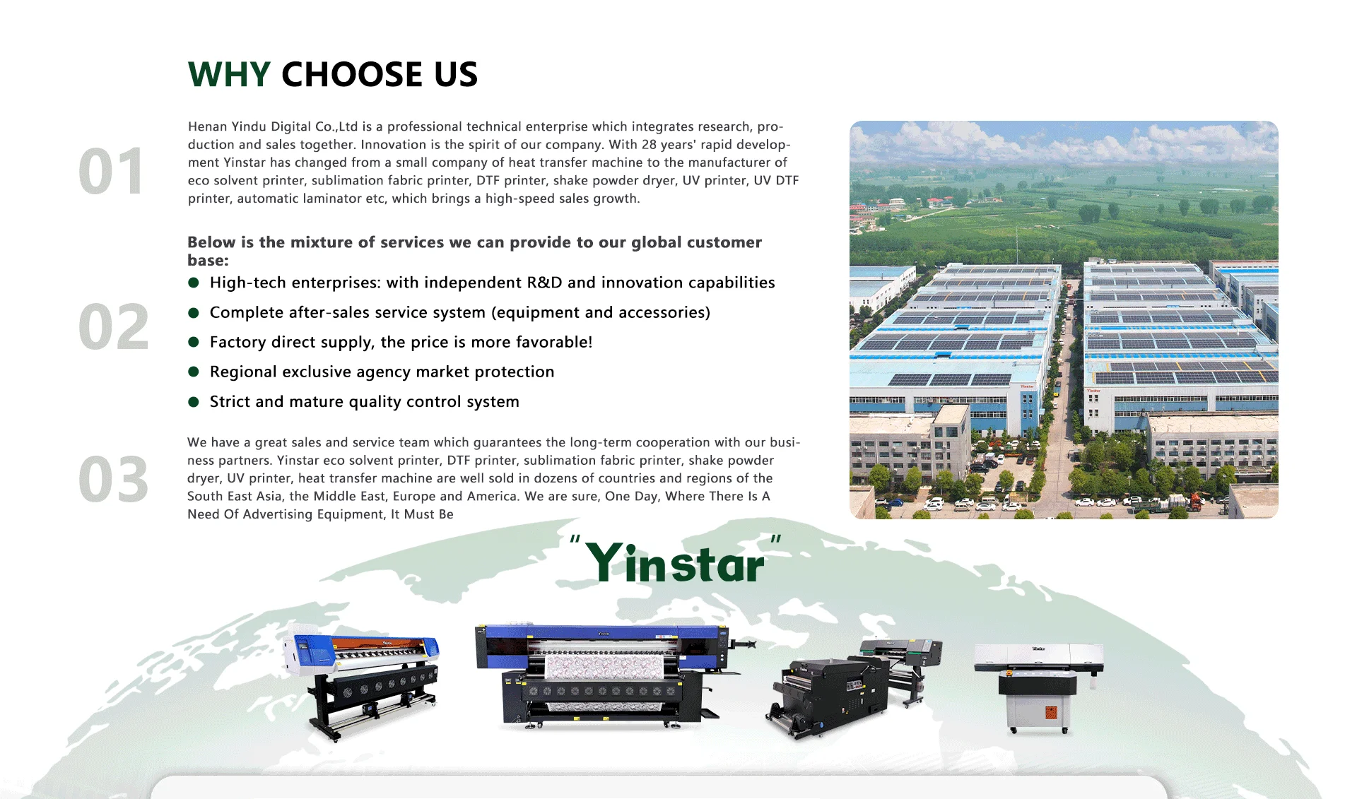 Hauptprodukte:Eco-Lösungsmittel-Drucker, DTF-Drucker, Sublimation-Drucker, UV-Drucker, Hybrid-Drucker